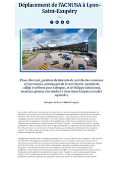 Les membres de l'Acenas présents à la réunion de la C.C.E (Commission Consultative de l'Environnement) ont pu échanger avec le nouveau président sur les problématiques rencontrés par les riverains de l'aéroport Lyon Saint Exupéry, notamment des nuisances des vols de nuit.